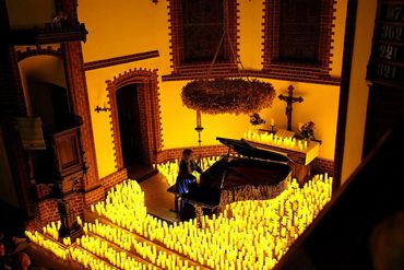 wir laden Sie herzlich zu einem ganz besonderen Erlebnis in unserer Kirche ein, das Sie in eine Welt voller Musik, Licht und tiefer Emotionen entführen wird. Unter dem warmen Schein von mehr als tausend Kerzen (LED-Kerzen) wird die Kirche in magisches Licht getaucht, während die Klänge des Klaviers durch den Raum schweben und eine Atmosphäre schaffen, die Sie in ihren Bann ziehen wird.